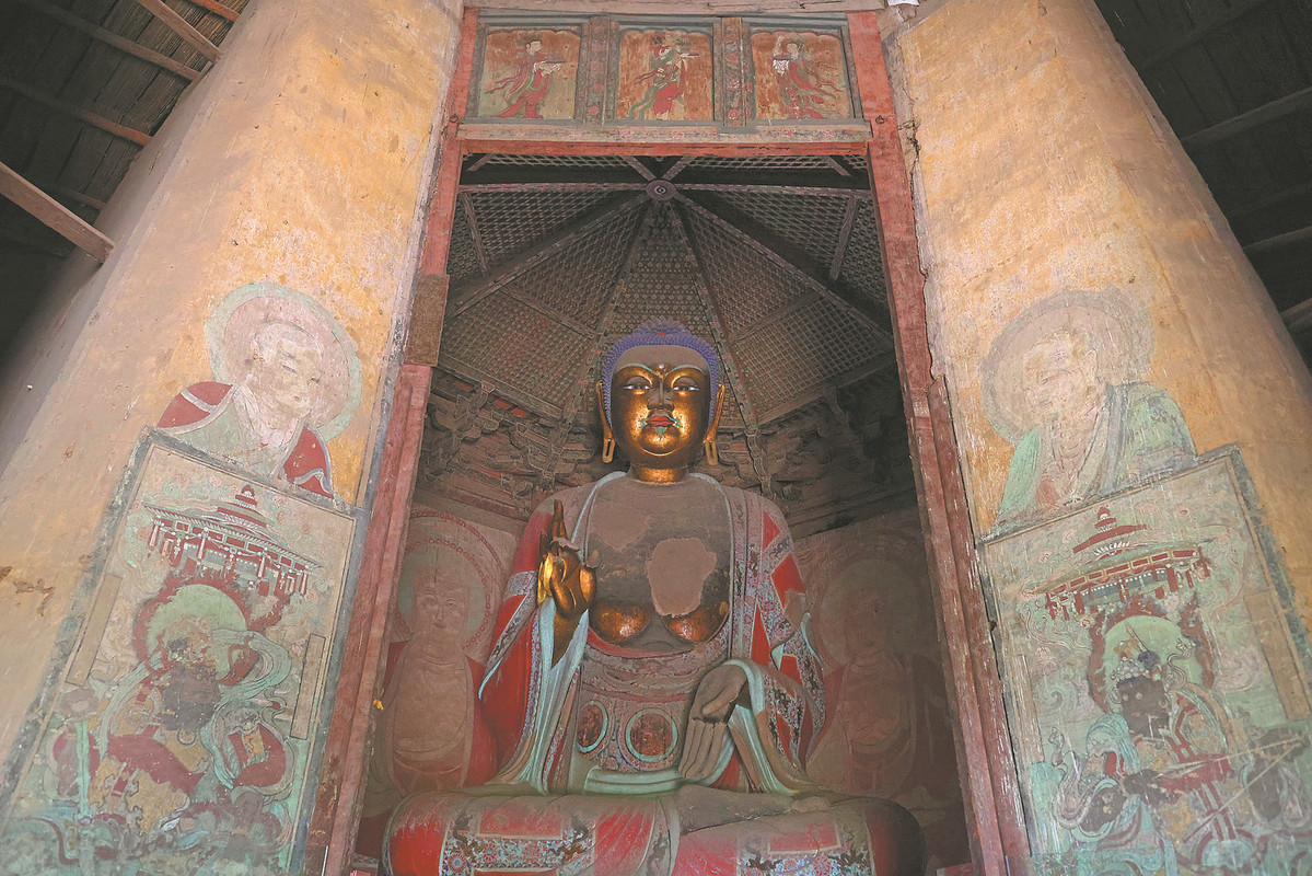 A well-preserved Buddha statue in the Sakyamuni Pagoda. (ZHU XINGXIN/CHINA DAILY)