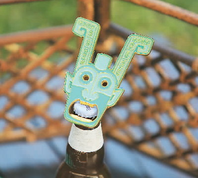 Photo shows a bottle opener, also a fridge magnet, in the shape of a two-faced bronze mask, a notable cultural relic. (Photo courtesy of the interviewee)