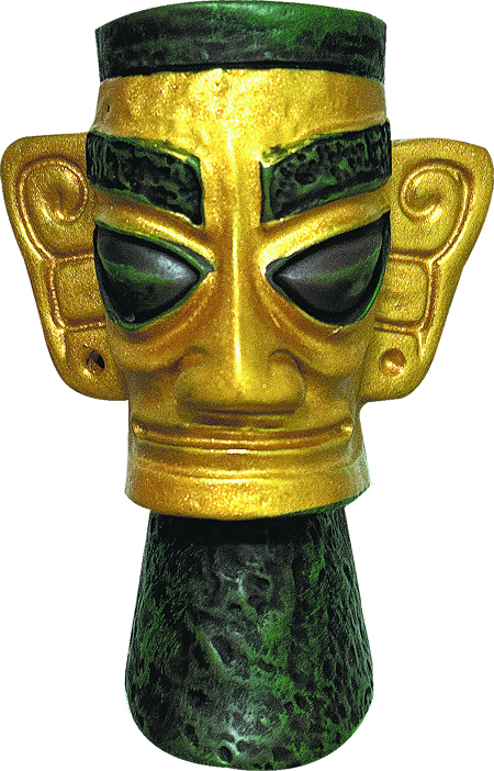Ice creams replicating bronze masks at the Sanxingdui Museum in Guanghan, Sichuan province, are displayed.[Photo by Yi Fang/For China Daily]