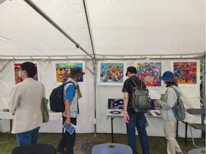 Rizhao farmer paintings were also exhibited on-site.It is reported thatRizhao farmer paintings originated from smear painting and are characterized by full compositions, bright colors, and a simple and honest style.Local agricultural practices, fishing life, and folk customsare all selected as the main content, reflecting the joy of Rizhao people over their harvest and their longing and pursuit of a better life. Visitors could not only appreciate the farmer paintings up close but also learn about the local traditional folk culture through these works.