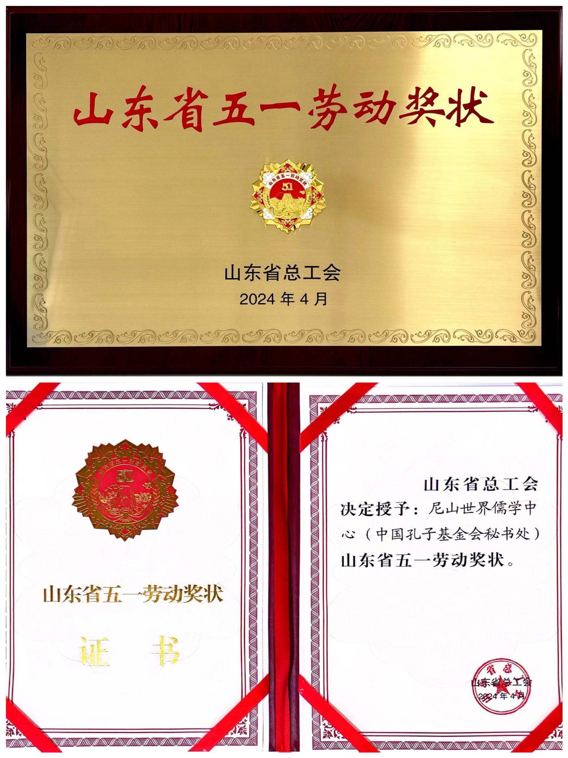 尼山世界儒學(xué)中心(中國孔子基金會秘書處)榮獲山東省五一勞動獎狀