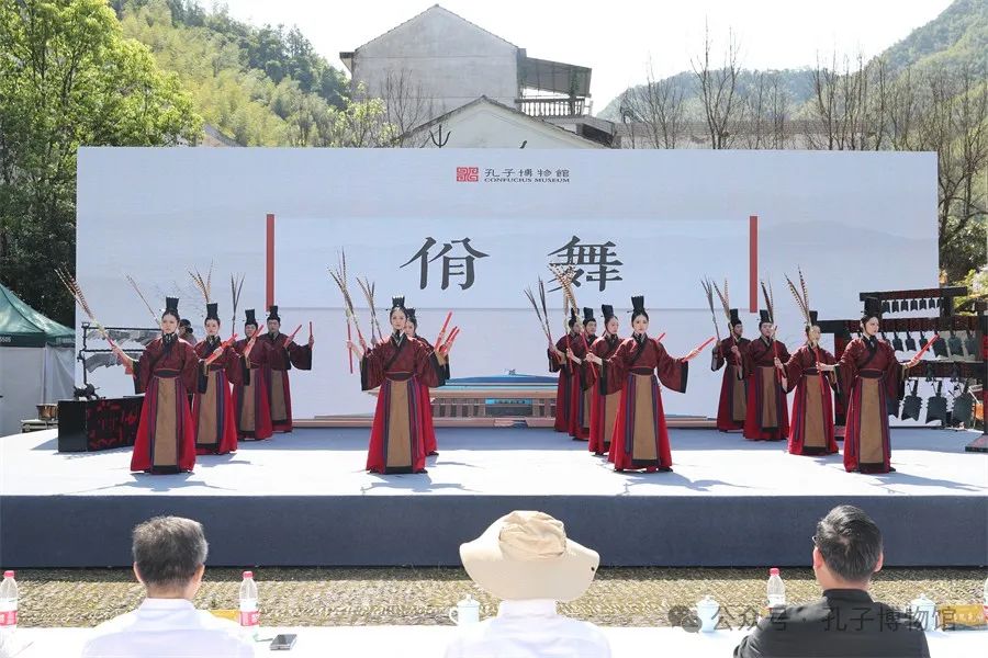 孔子博物館作為傳承弘揚中華優秀傳統文化的重要文化設施,擁有大量傳世有序、制作精美的禮樂器文物,2019年成立簫韶樂團,從“禮、樂、歌、舞”多個角度傳承禮樂文化,“聲容可接,名物燦然”。磐安櫸溪孔氏自兩宋之際遷徙至此,耕讀傳家,詩書繼世,傳承近千年。兩地因孔子而相連,同以弘揚孔子文化為己任。5月18日,孔子博物館簫韶樂團遠赴千里之外的磐安,在櫸溪孔氏家廟前,以佾舞與雅樂致敬先師孔子。